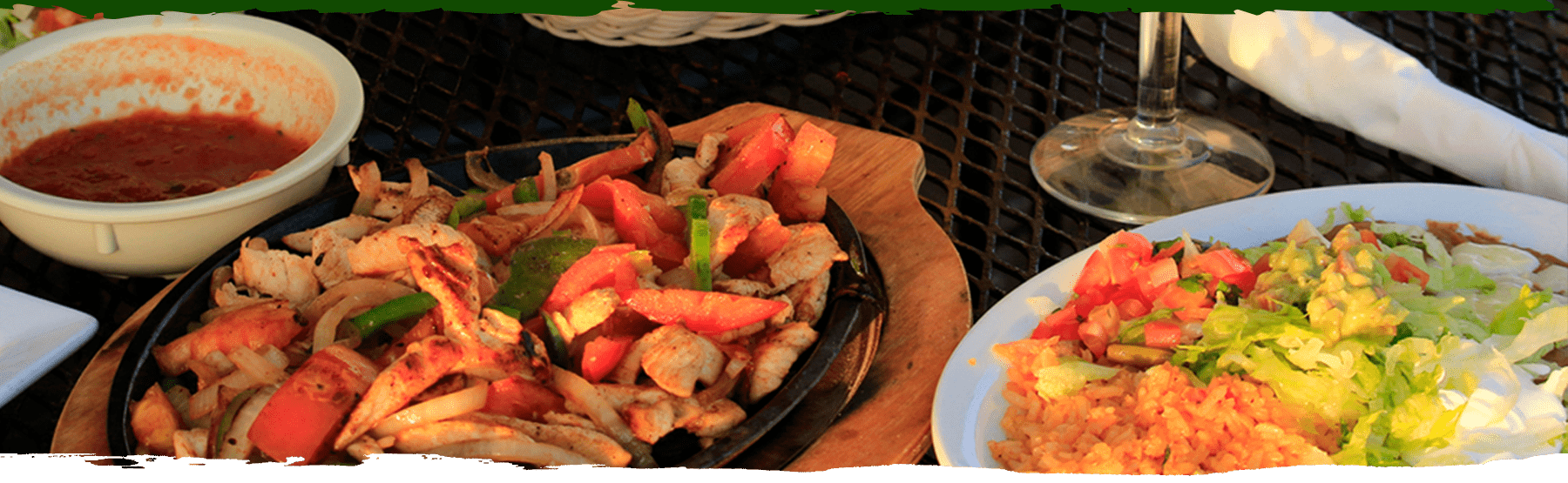 All fajitas are cooked with sautéed bell peppers, onions and tomatoes. Served with beans or charro beans, rice, lettuce, sour cream, shredded cheese, guacamole, diced tomatoes and tortillas.